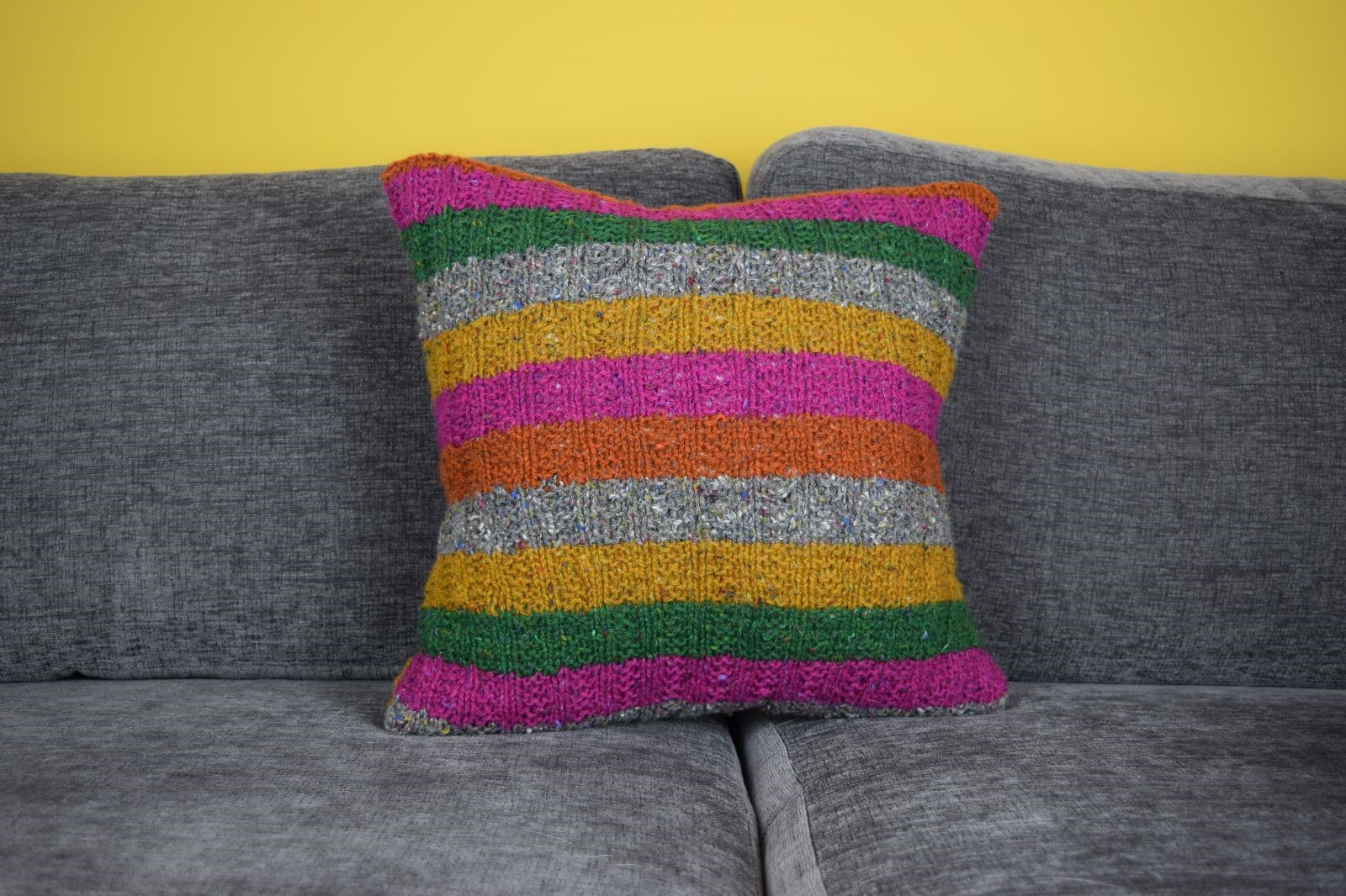 Proudly presenting Little Miss Drop Stitch’s first pattern! A knitted cushion with a deliciously homely garter stitch rib texture. Take a look on our YouTube.