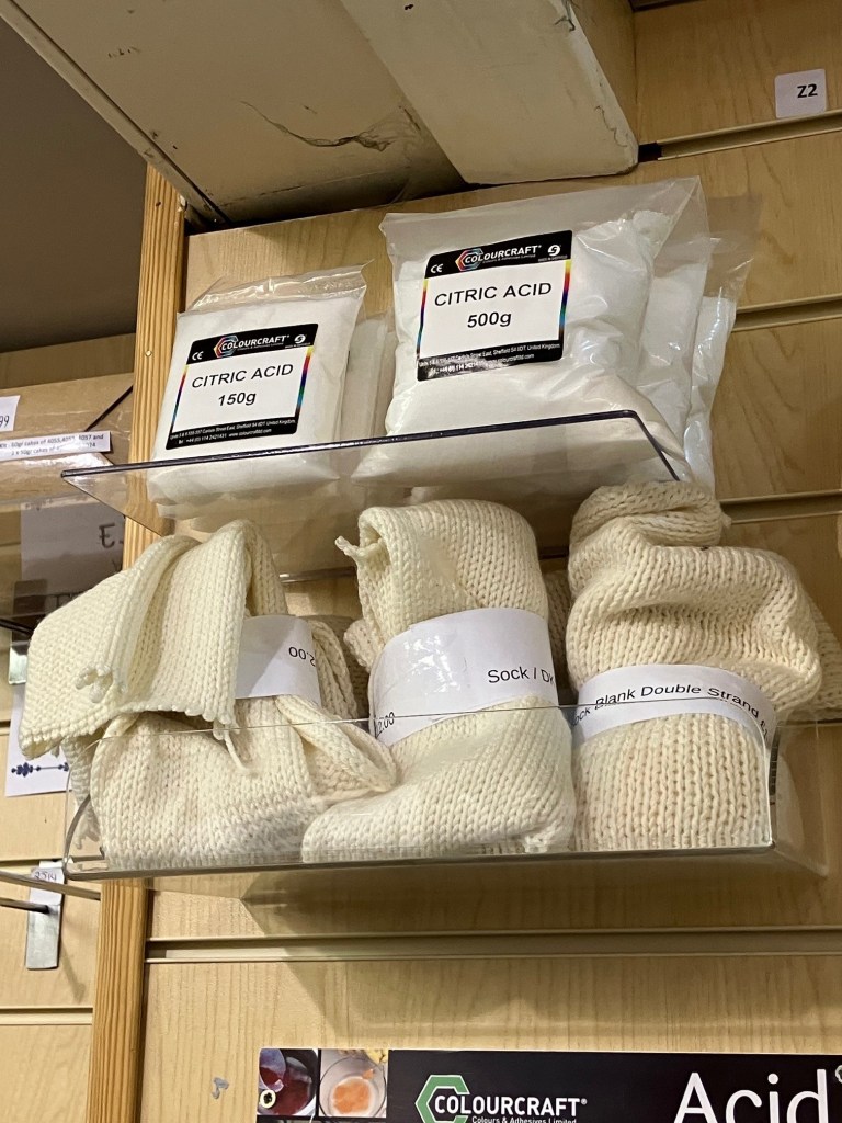 Things that caught my eye, which I hadn’t seen before, are 50g Schoppel yarn balls and equipment to dye your own yarn. This included acid dye, citric acid and unbleached yarn. Very innovative! They do stock lots of needles, however, I would describe BSW more limited in the brands and styles of needle they stock.
