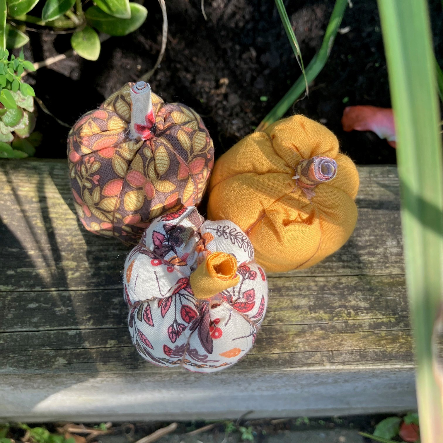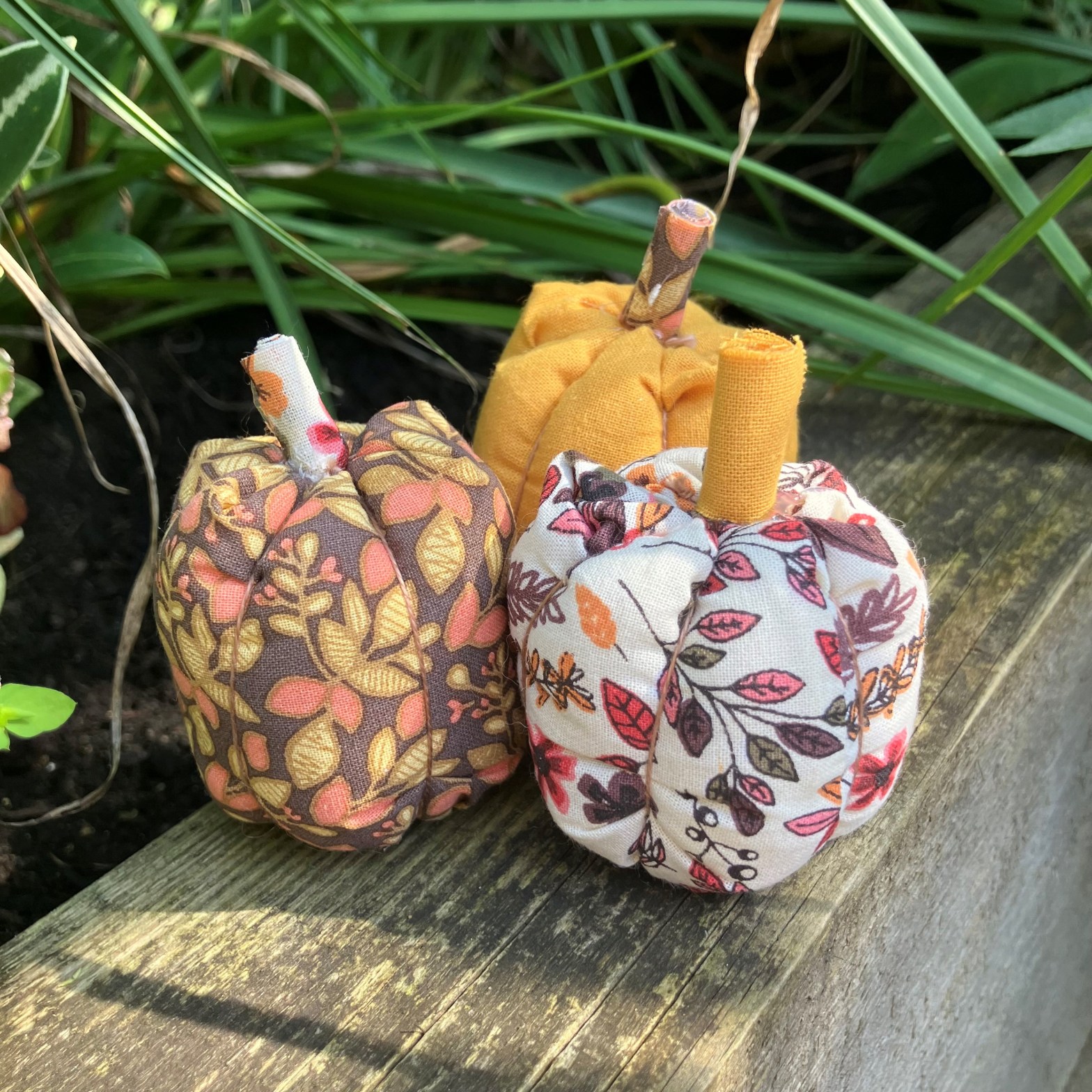 Enjoy our free tutorial for how to make these lovely little sewn pumpkins. A great way to use fabric scraps, or make 9 per fat quarter. This project can be made with or without a sewing machine.