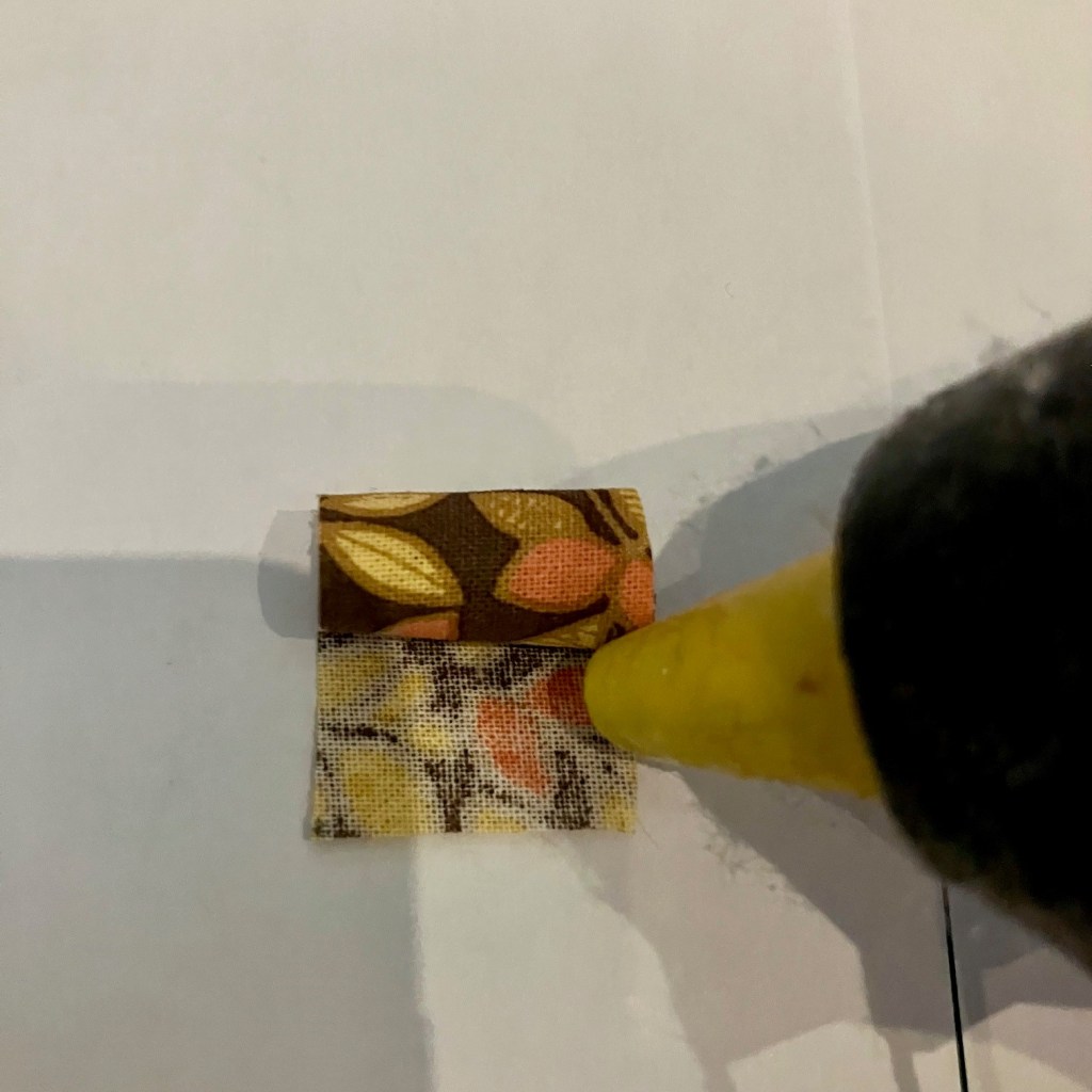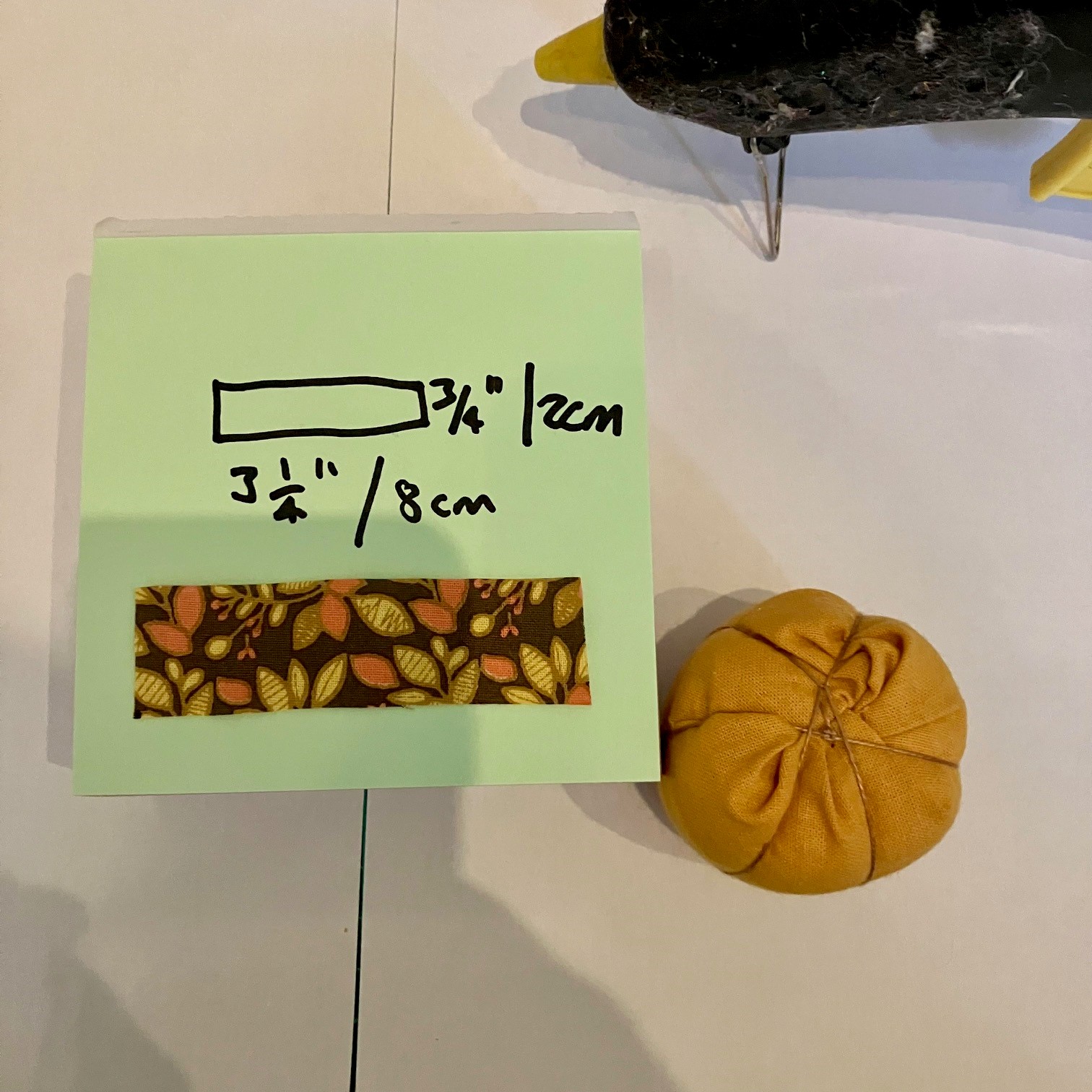 If you have been batch making 9 from a fat quarter, the strip left at the end will be more than enough to make 9 stalks. If you are really making a lot, we mixed the stalk to a different colour pumpkin.