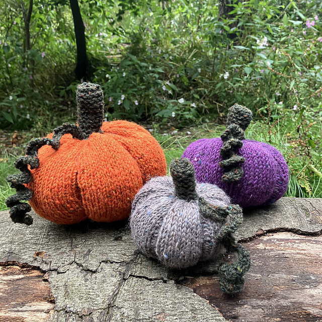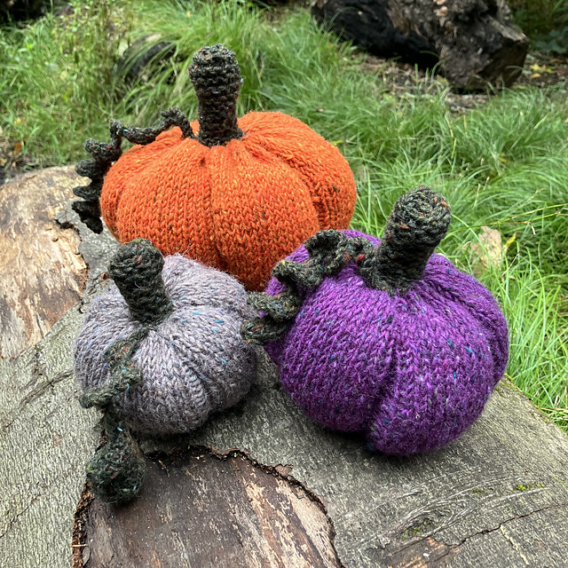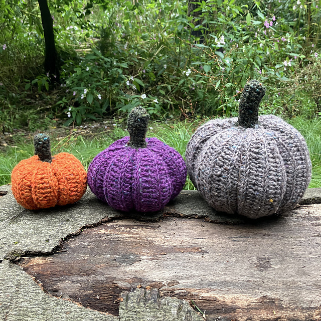 Three pumpkins sized little to large all in worsted or Aran weight yarn.