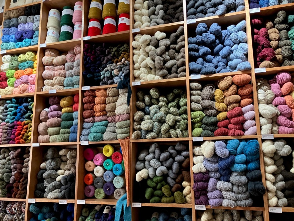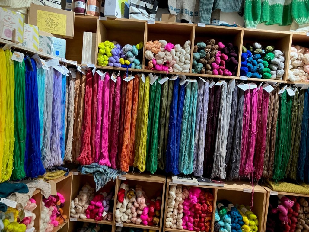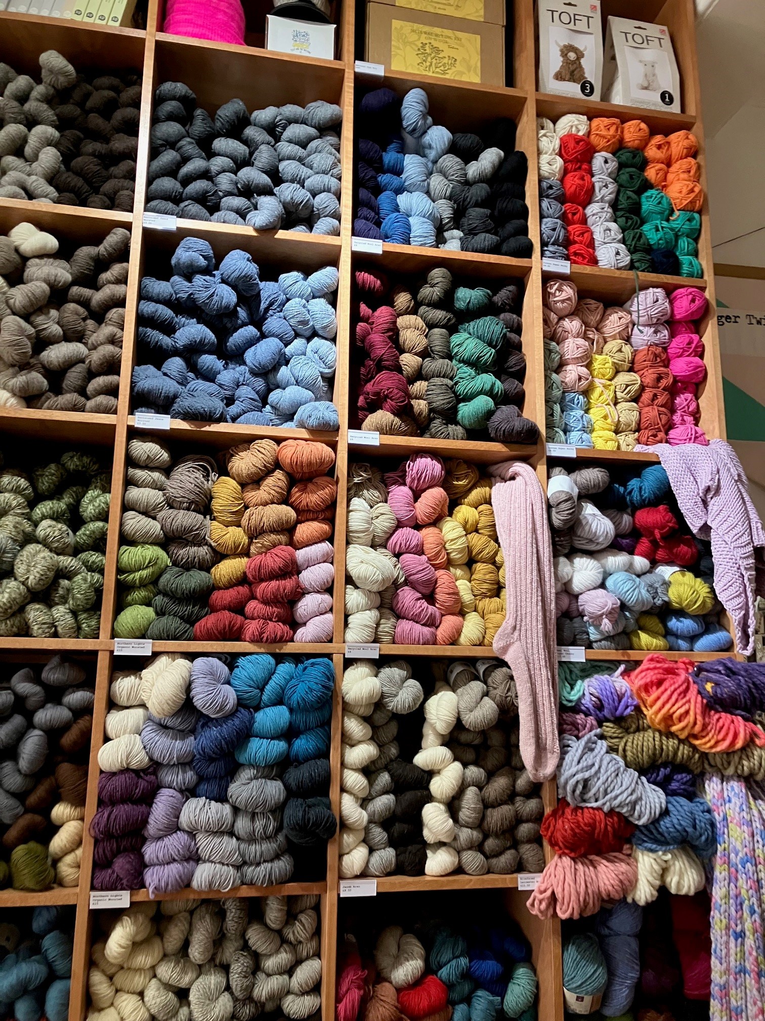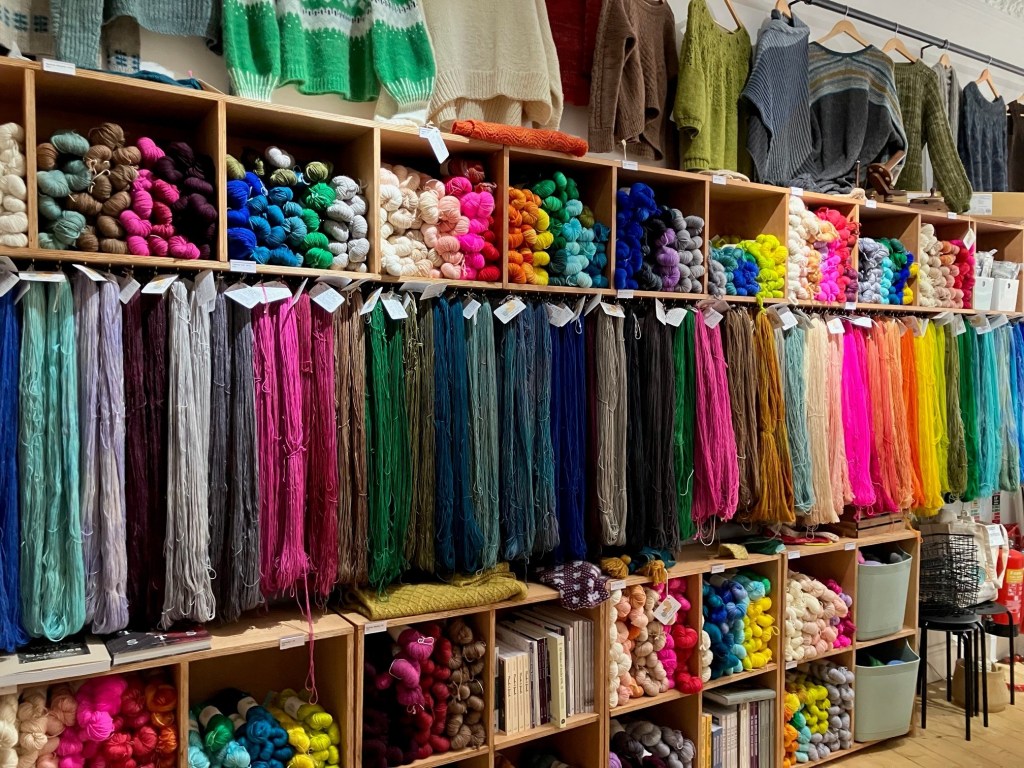 The price range I’d rate at mid to high: high being their gorgeous hand dyed yarn. But you can come away with something small and unique from Ginger Twist. I was on a low budget and purchased these special little buttons which look like log slices (because they are!). I think the independent products make Ginger Twist one of my top wool shops to visit. I feel like I’ve learned and seen new things, despite being familiar with others.