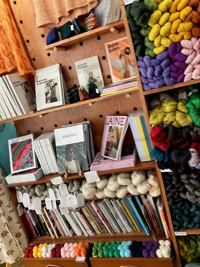 They also had a comprehensive book shelf, possibly one of the best I’ve seen. Their books were particularly suited to my personal interests, in addition to sparking new ones. They stocked the new 100 Latvian Mittens book and also books on Portuguese knitting (who knew this is a thing!?). They had quite a few independent magazines, including Pom. Literally so many editions, you could definitely spend a fair bit of time here flicking through.