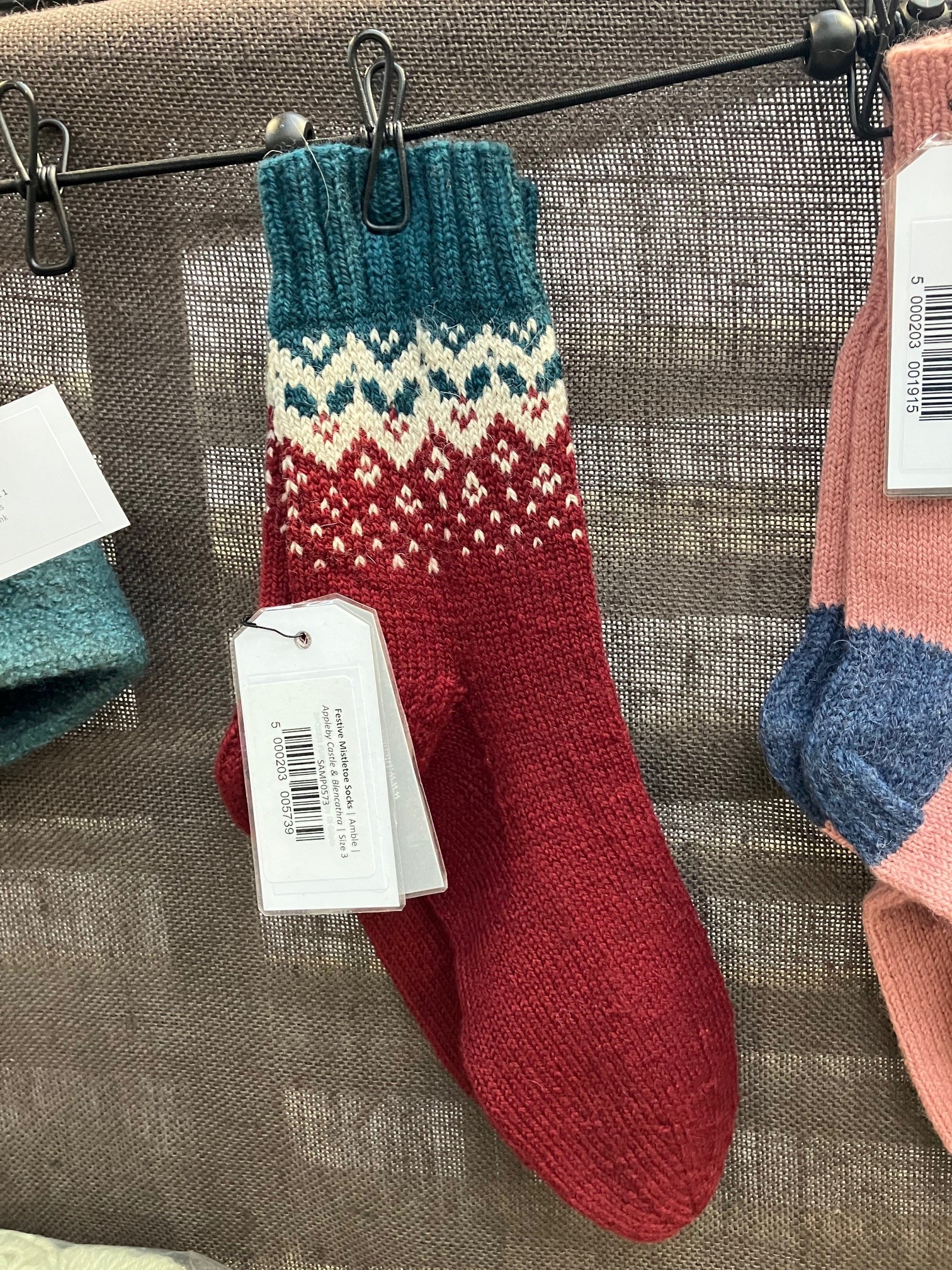 I hadn’t been able to find the new Christmas West Yorkshire Spinners yarn on my woolly travels thus far, so I was pleased to spot this at the show. I only saw one other stall selling it as well. I also received a complementary paper pattern of the new Winwick Mum sock design.