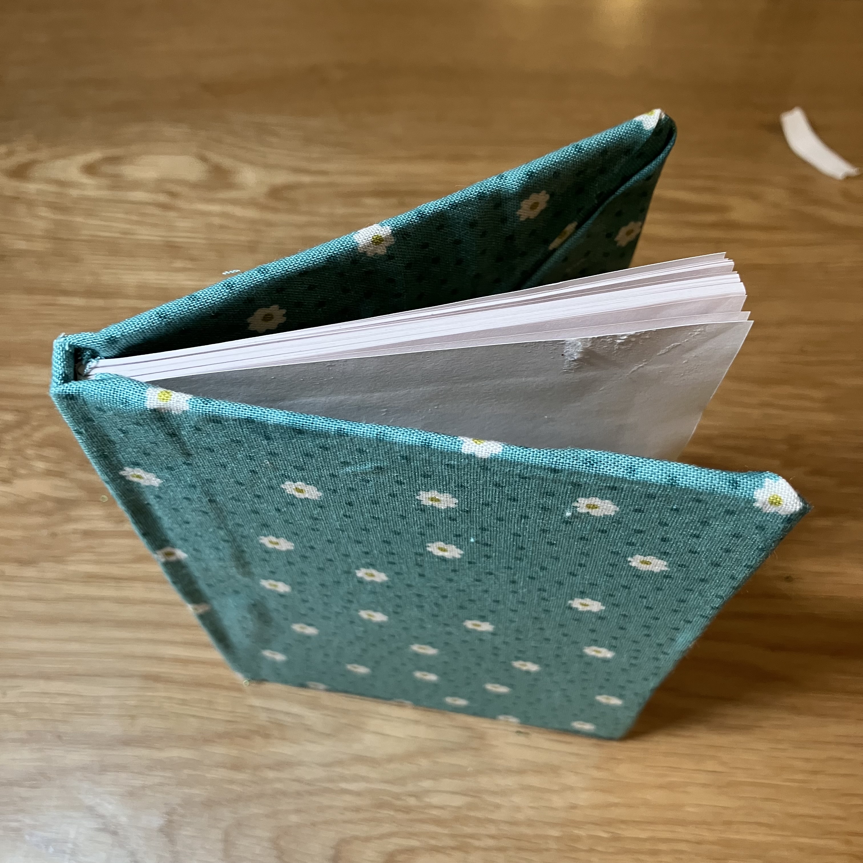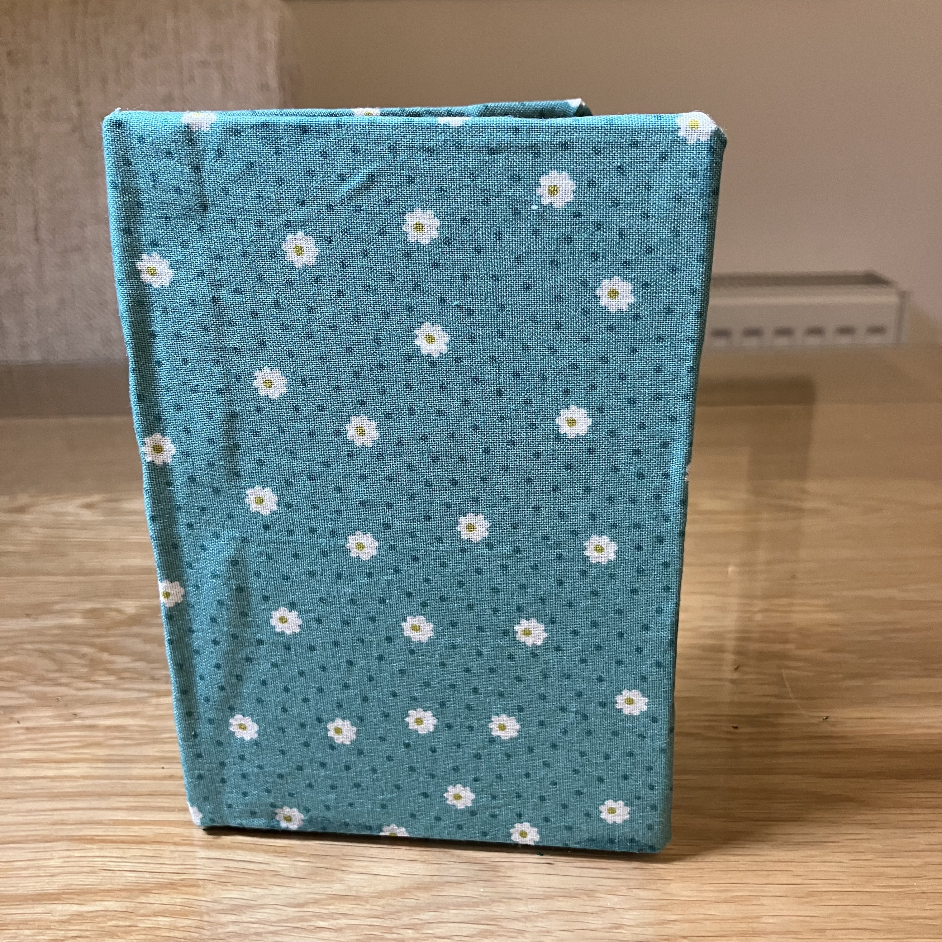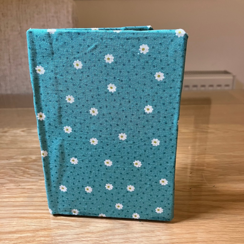 Cut fabric 1.5″/3.8cm around the book. Don’t forget to include the spine. This measurement has been chosen to work with any size book.