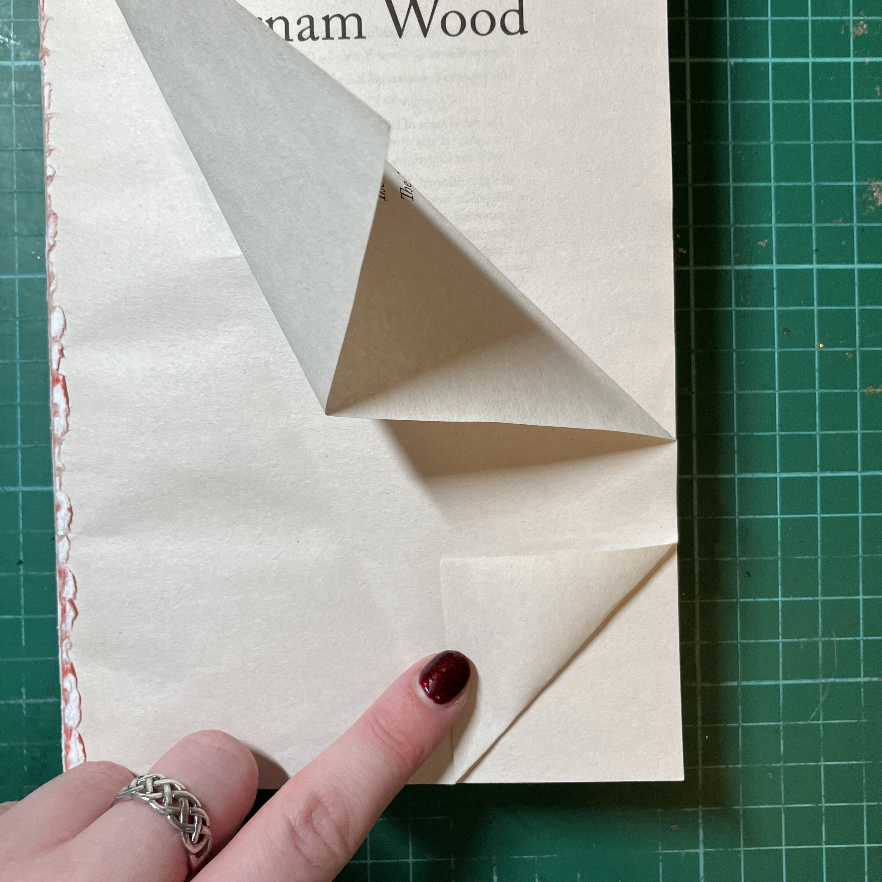 Fold the page, again, towards the spine.