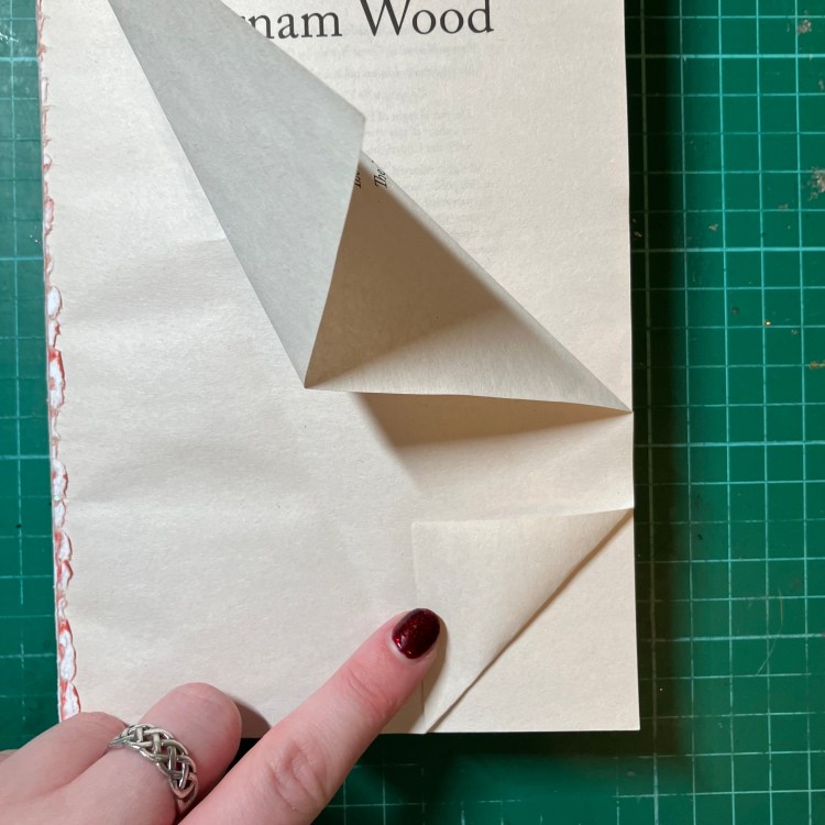 The bottom of the page currently extends beyond the book. To hide this, turn the page over and fold the bottom right corner of the page to make a small right-angled triangle. Turn the page back over to complete.