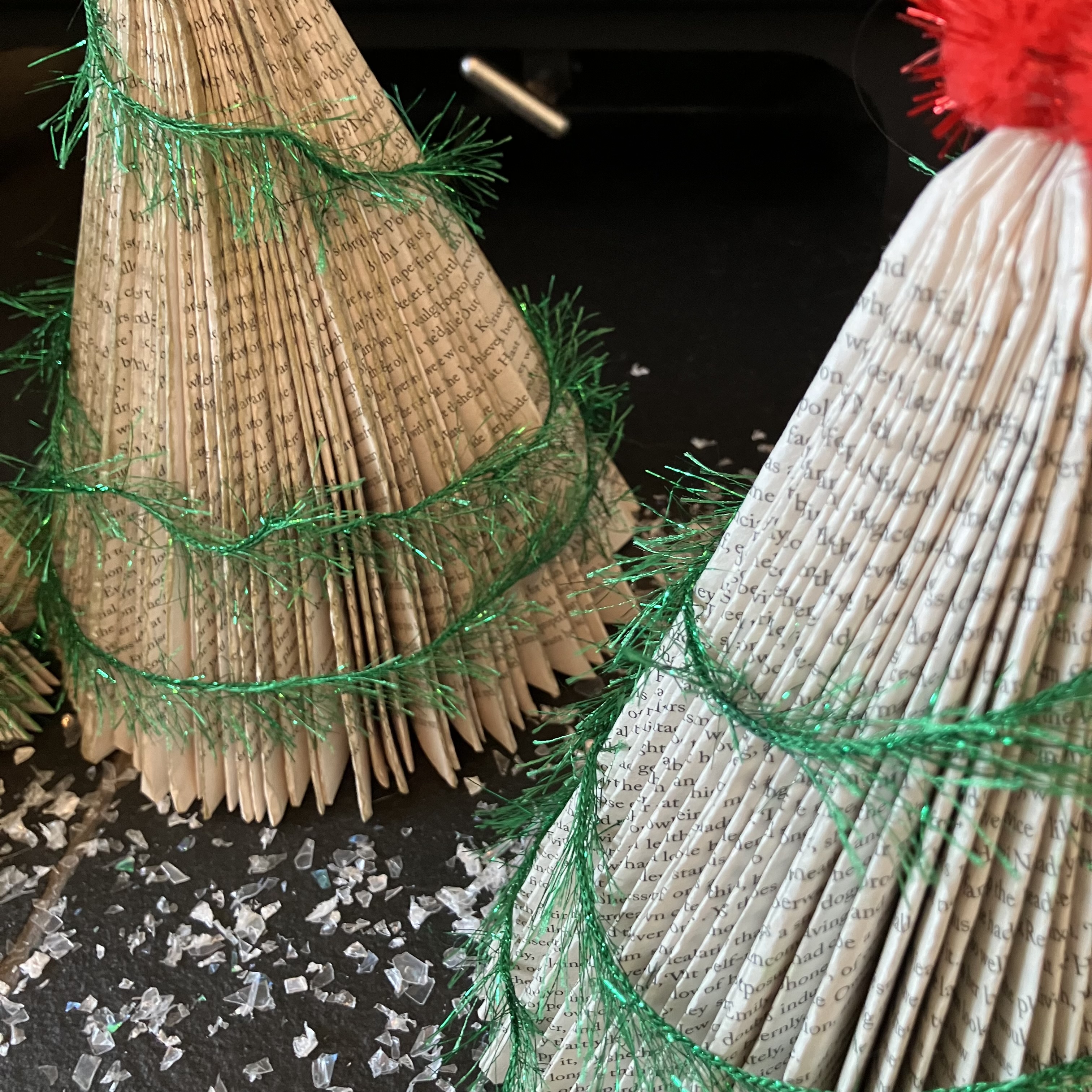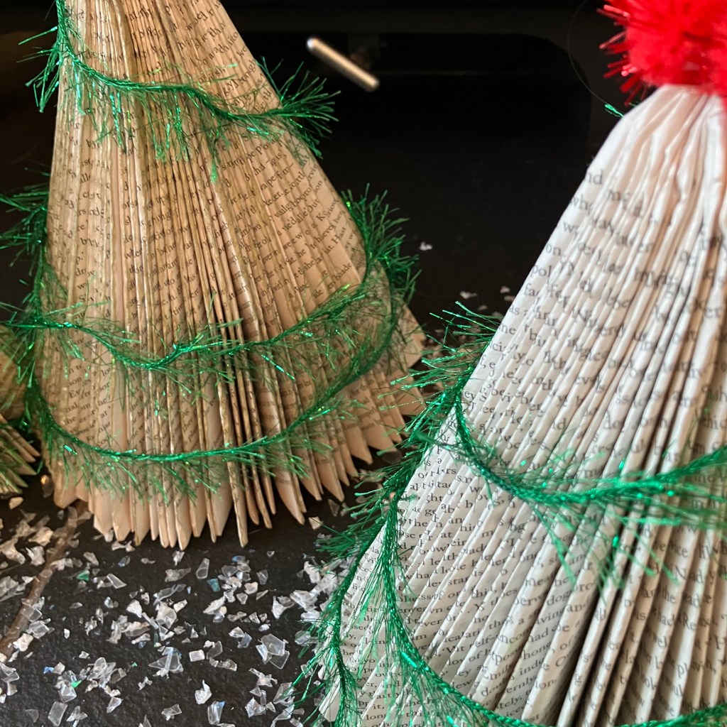 We have designed this project as a safe and easy make for all ages. These upcycled book trees would make a wonderful and thoughtful gift this festive season.