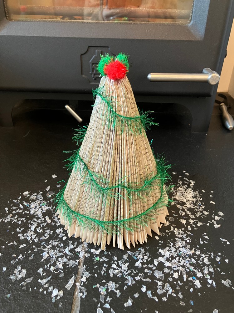 Click here for the Book-cycle Christmas Tree tutorial, featuring the tinsel yarn.