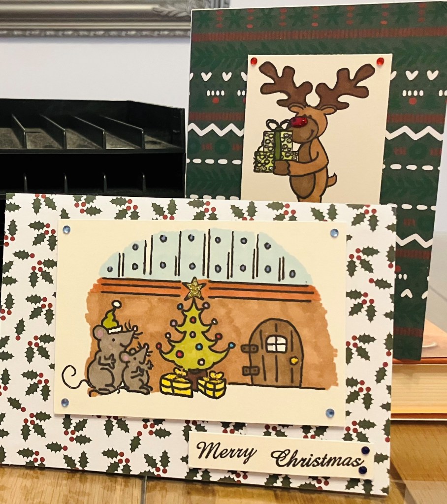 We usually do crafts that follow a chart or pattern, so it was nice to stamp, colour in and enjoy each other’s company. Best of all it cost us nothing as it was already in our stash…and we saved money by not having to purchase Christmas cards.