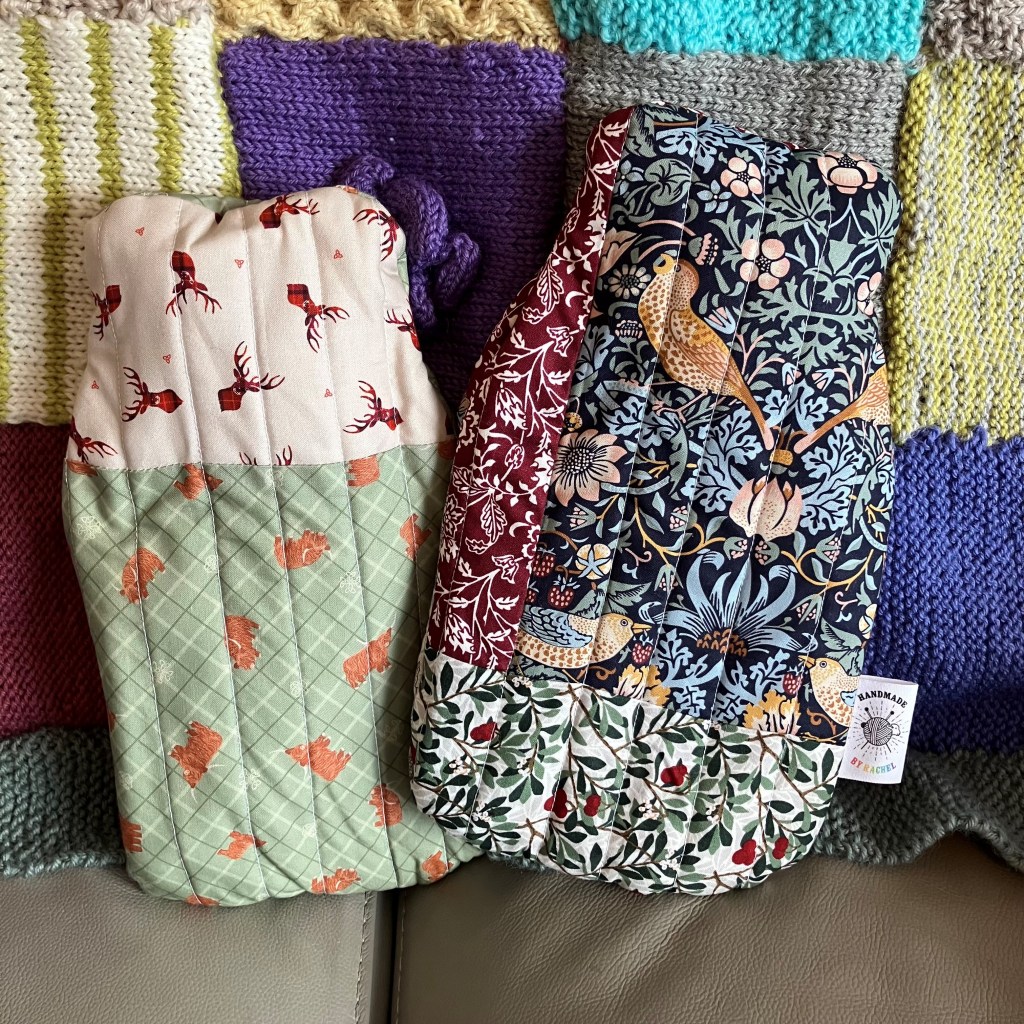 I made beautiful quilted hot water bottle covers from my fabric scraps. Just let me know if you would like me to draft a pattern and make a tutorial.