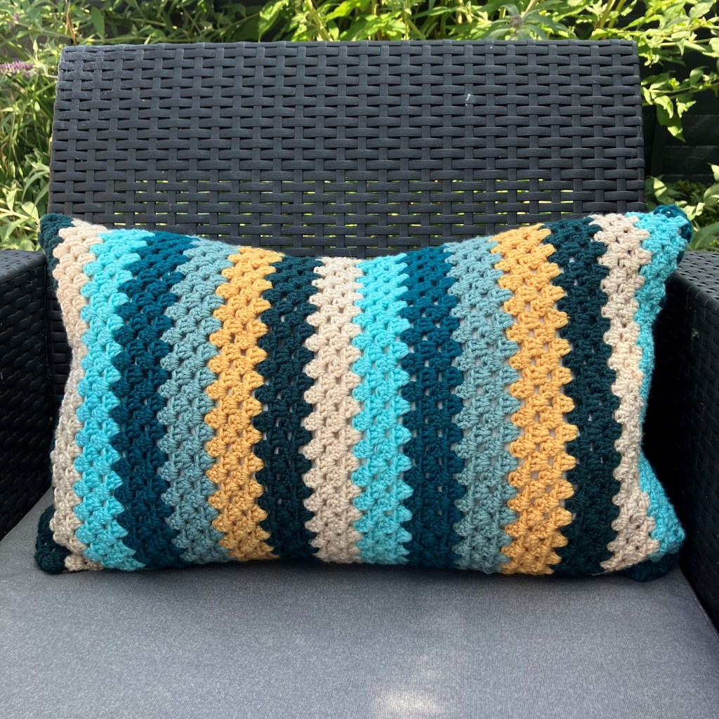A stylish granny stripe crochet cushion cover inspired by the charm of the Norwegian coastal town. Designed to be beginner-friendly yet satisfying for experienced crocheters, this project combines timeless texture with modern colour options.